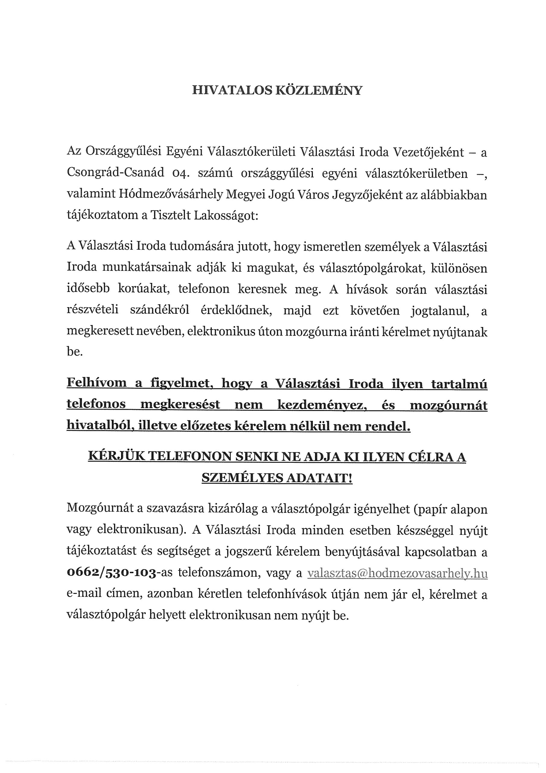 Hivatalos közlemény